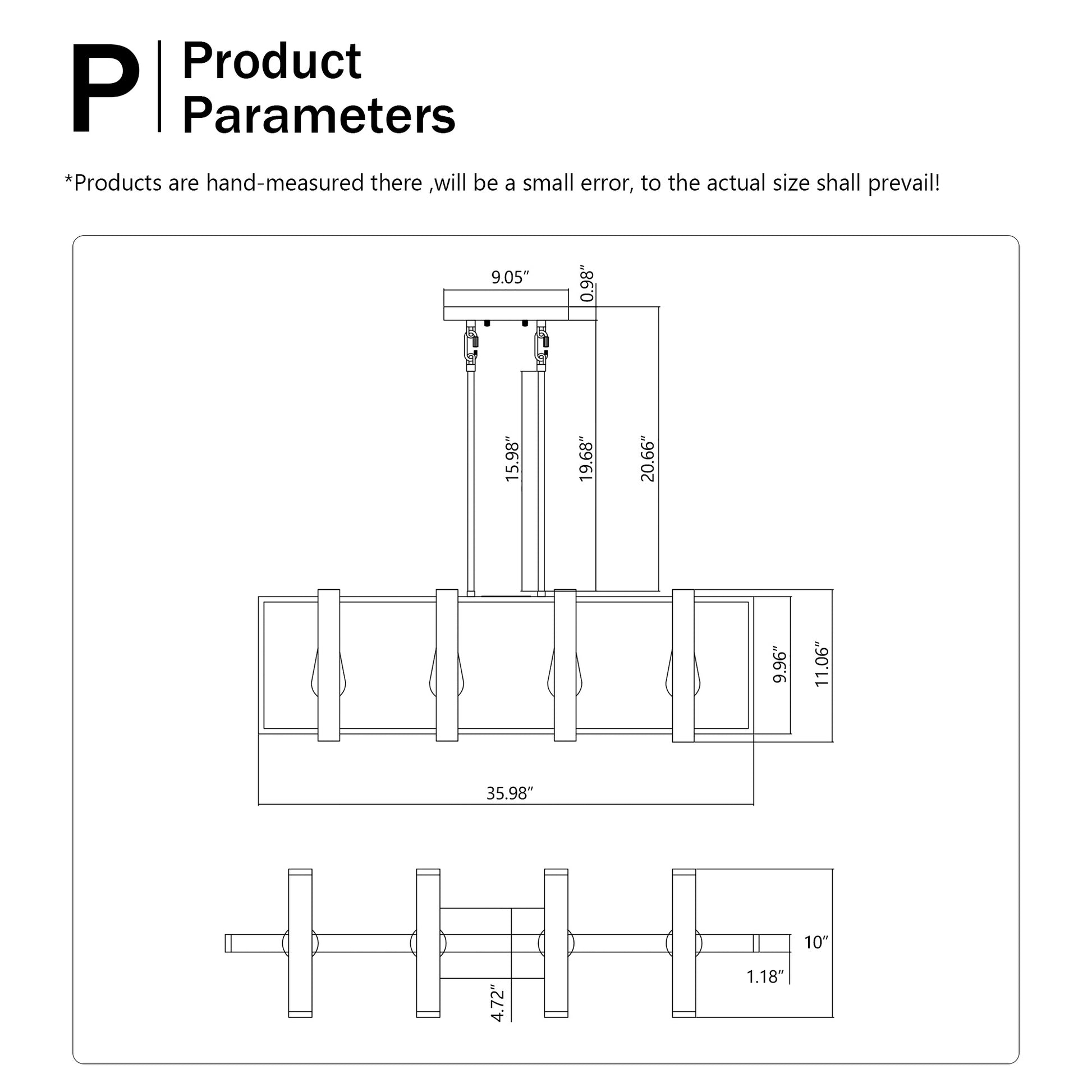Product Name:4-Light Kitchen Island Lights Pendant Light Farmhouse Dining Room Light Fixture, Rustic Wood and Black Metal Rectangular Chandelier, 36" Hanging Lighting for Living Room,Conference Room, Home Office
